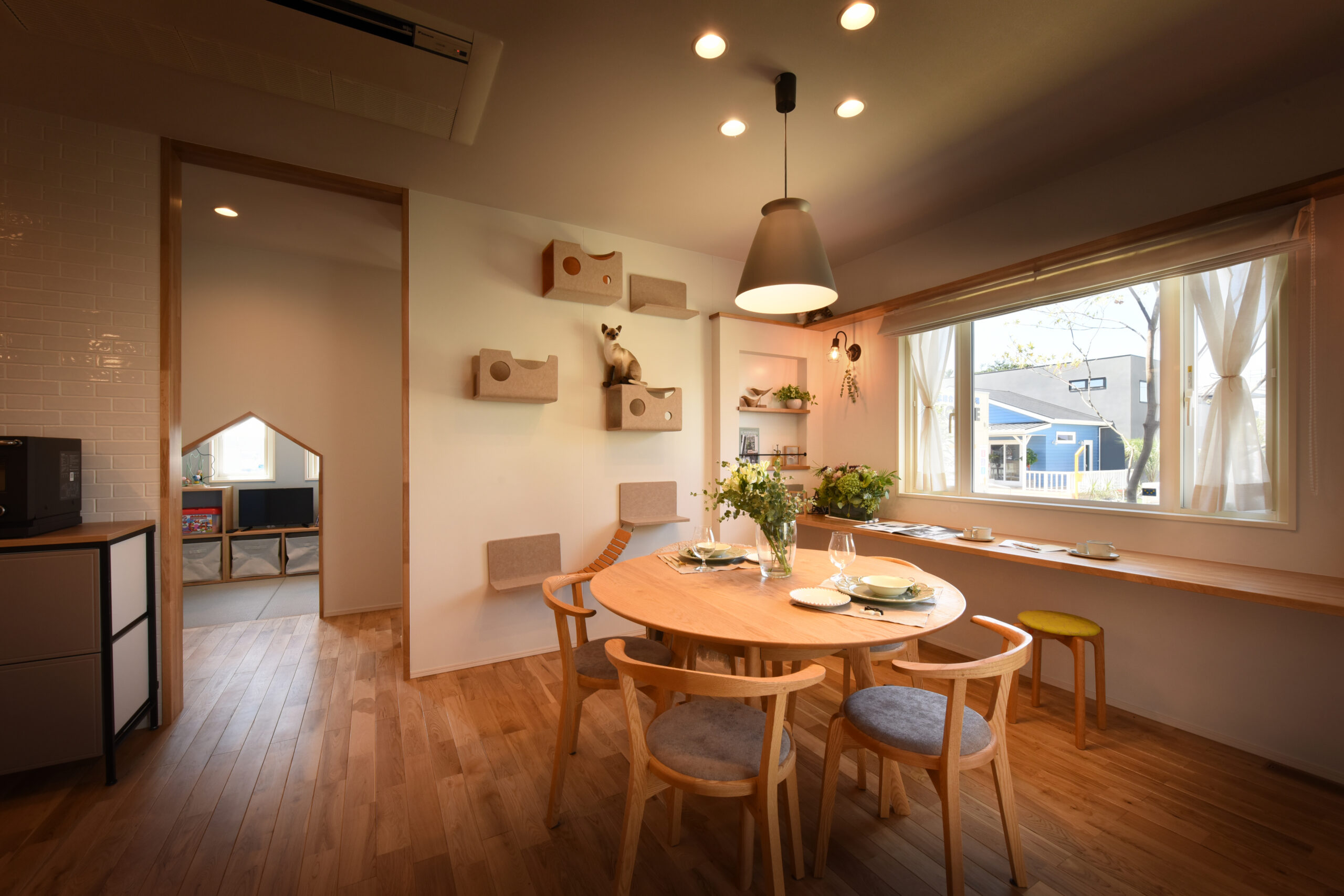 - 愛猫が通り抜ける可愛い猫穴や楽しめる猫壁(にゃんぺき)。