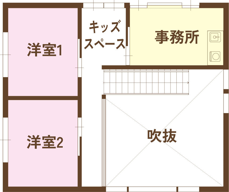 吹き抜けの開放感と、成長に寄り添う間取りが魅力です。