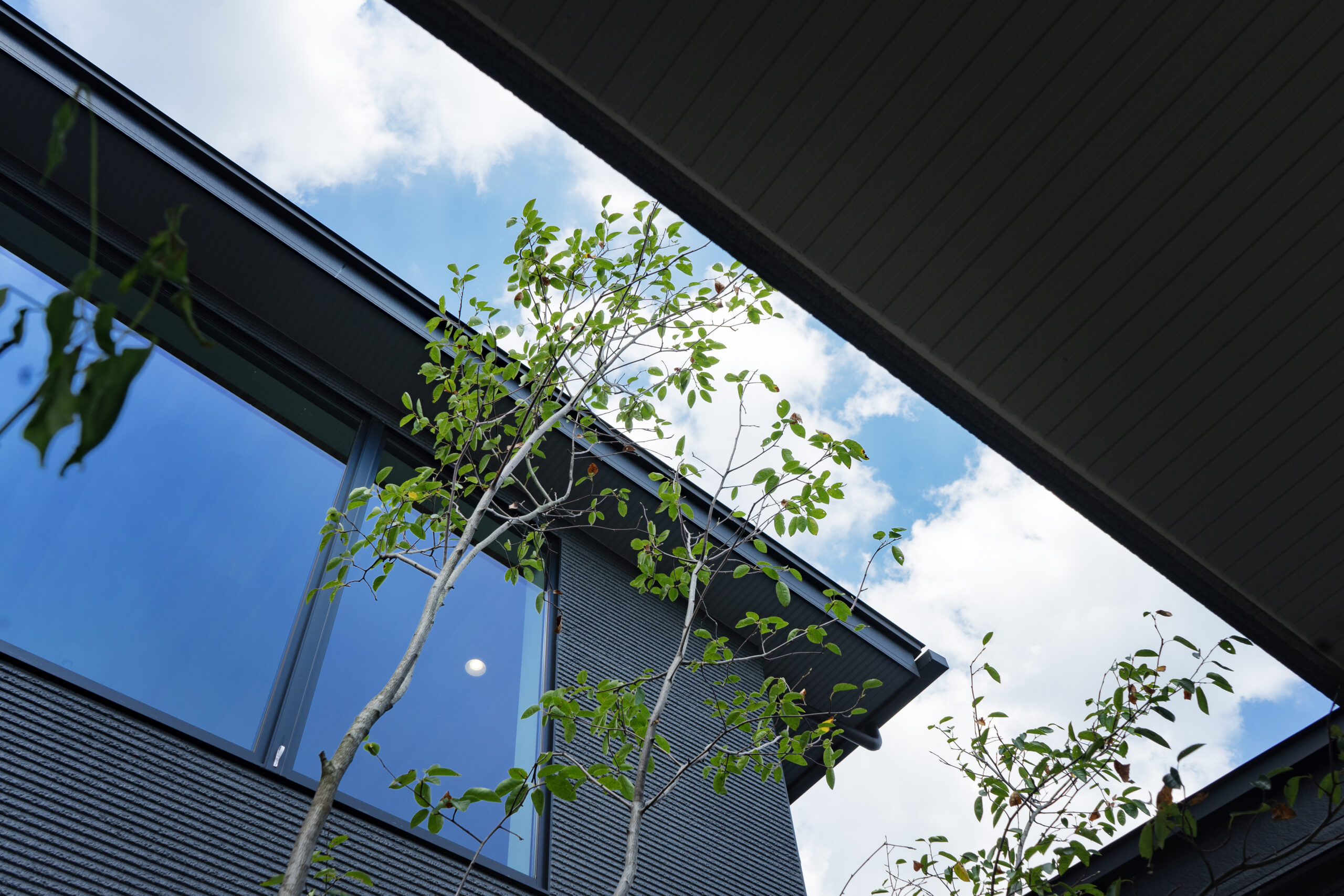 - 縁側でくつろぐ、中庭を眺める平屋ライクな暮らしができる家